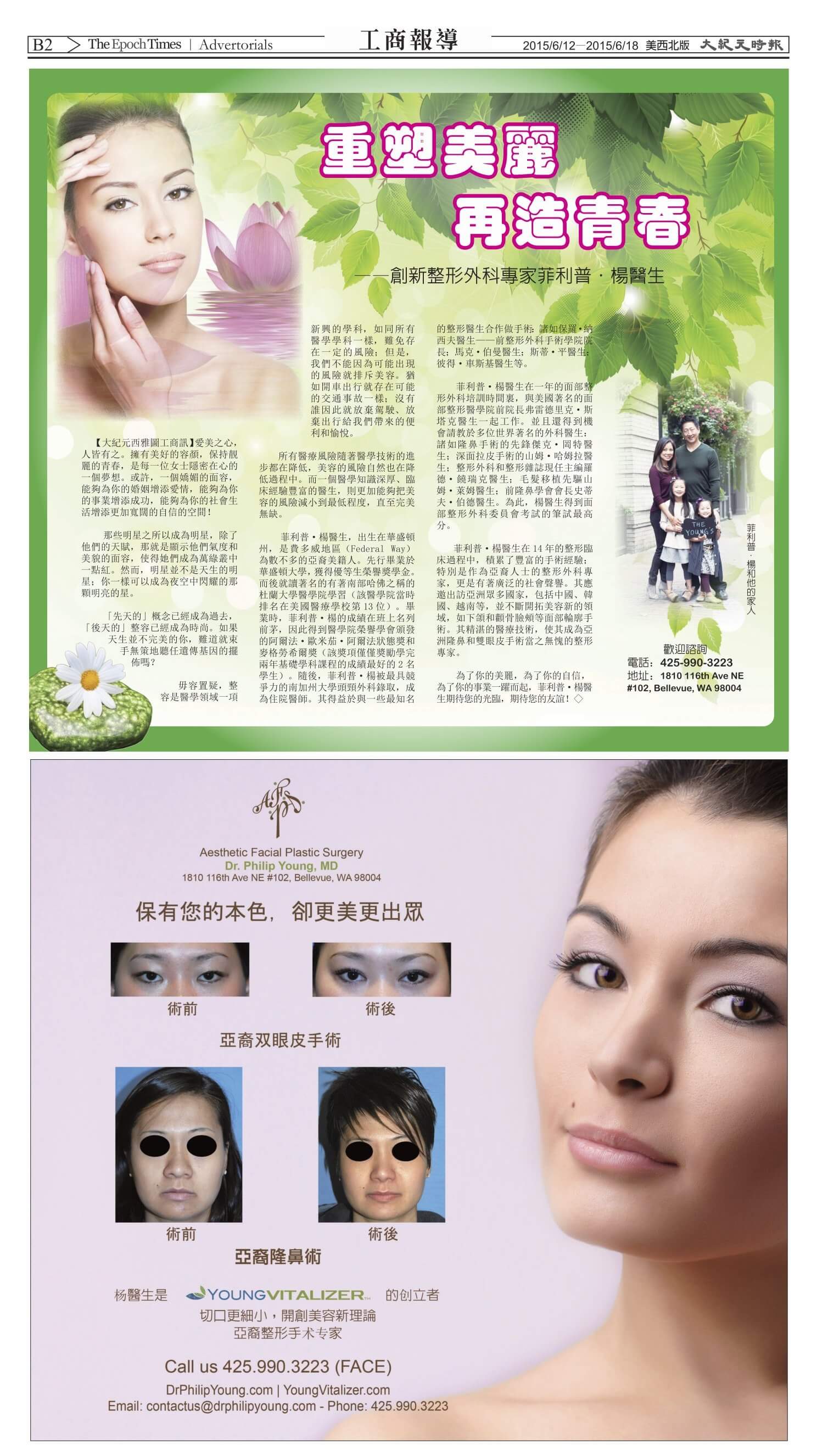 Dr. Philip Young M.D. Plastic Surgeon Article in the Cosmetic Surgery Times Read MoreBelow are some media that Dr. Philip Young has been featured in. Please contact us at any time to ask us about any of these pieces of advertising and media displays. We look forward to talking to you!