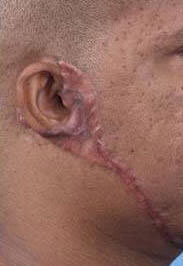 After Excision of Large Keloid along Ear and Jawline with Healing by Secondary Intention