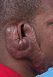 Before Excision of Large Keloid along Ear and Jawline with Healing by Secondary Intention