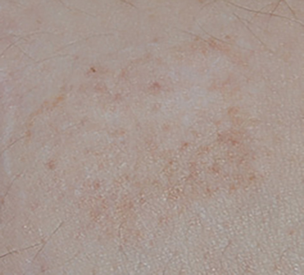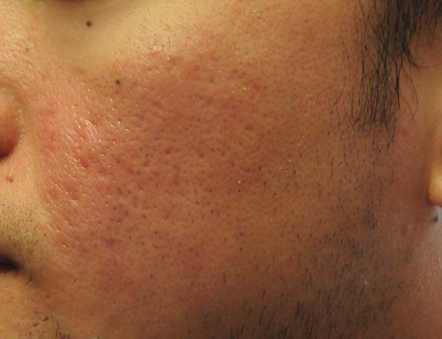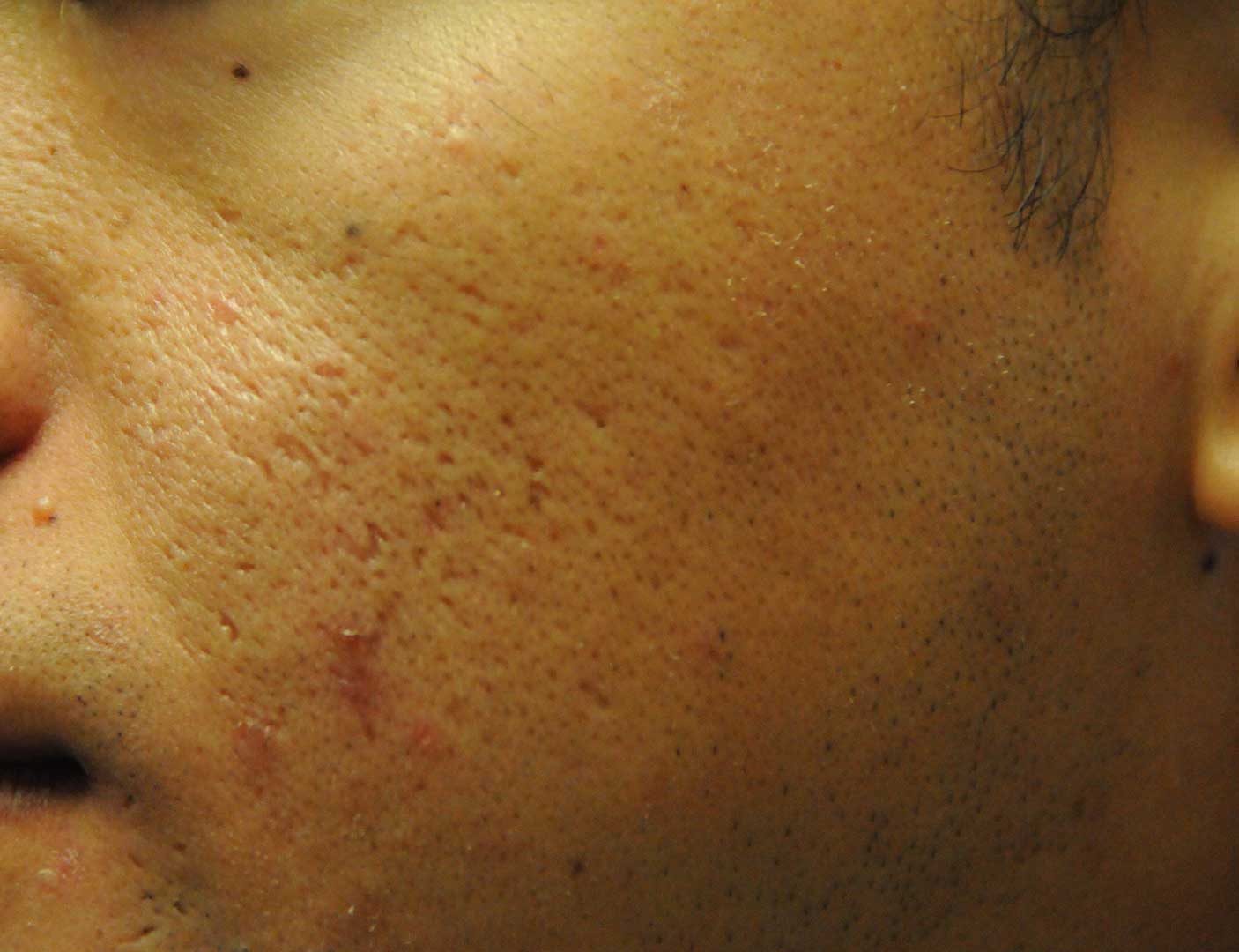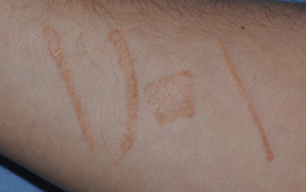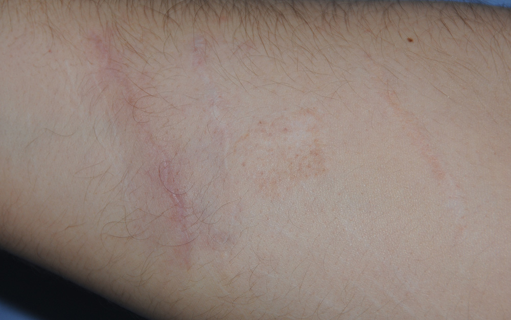 After Scar Revision for Self Induced Arm Injury Laser Scar Revision Procedure. Middle Square Scar Close up View