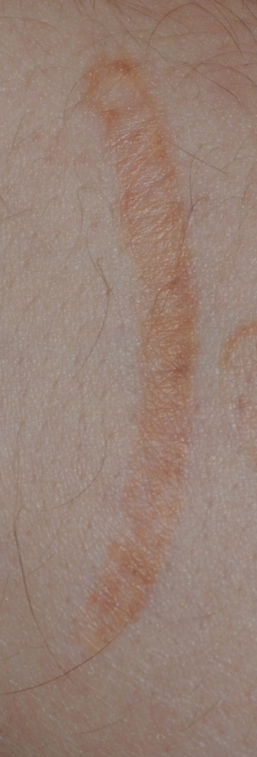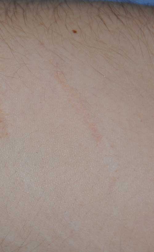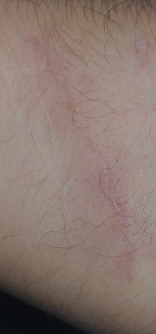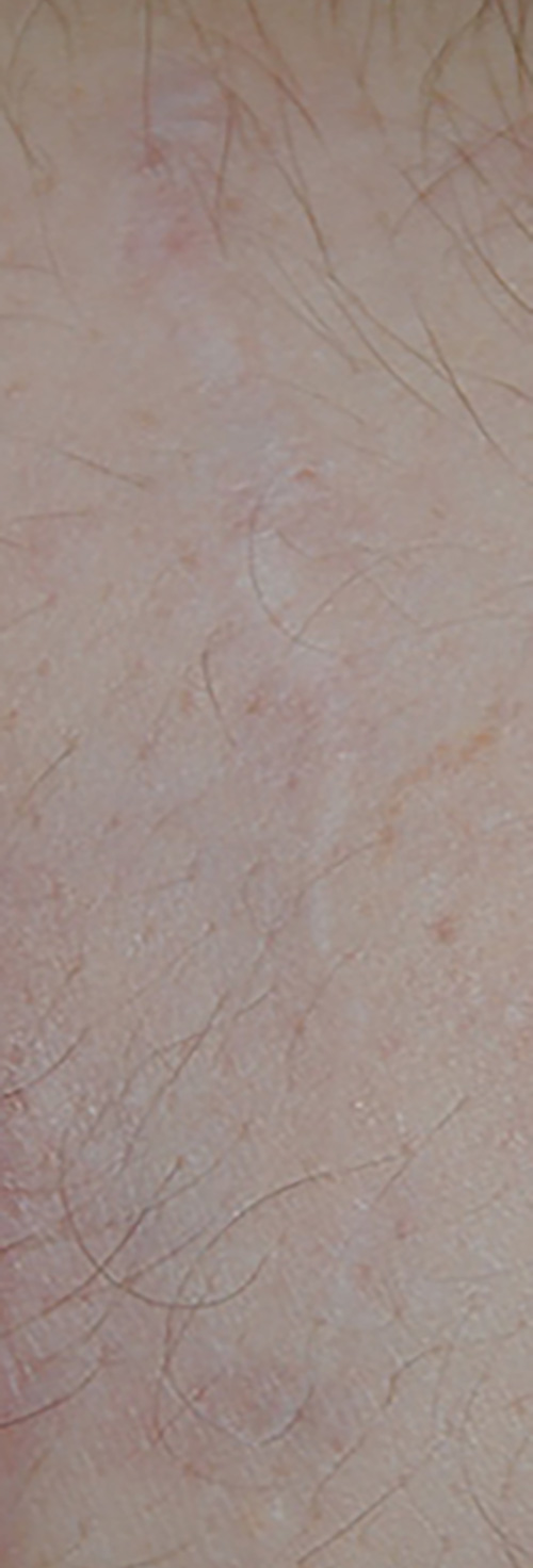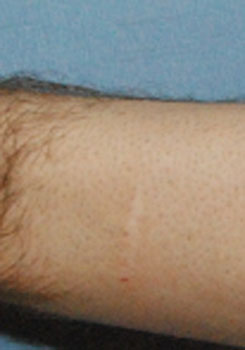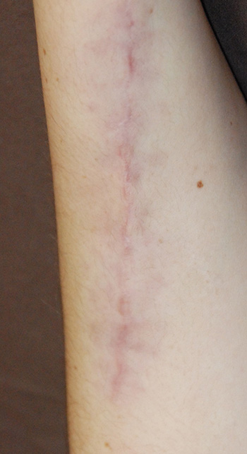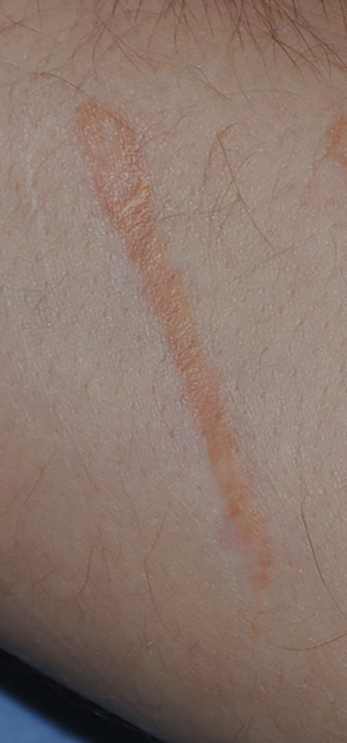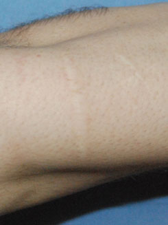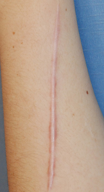 After Scar Revision for Self Induced Arm Injury Laser Scar Revision Procedure. Right Scar Close up View