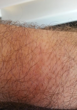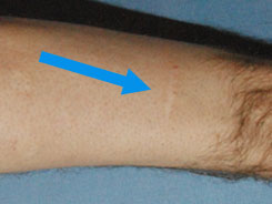 Before Scar Revision for Self Induced Arm Injury Laser Scar Revision Procedure. Right Scar Close up View