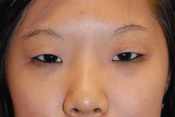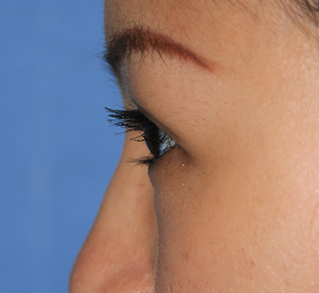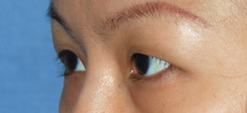 Dr. Young believes that the distance between the eyelid margin (location of the eyelashes) and bottom of the brow should be ideally around one iris width in distance (the colored part of the eye). Even if you are at this distance, you can still lift the eyebrows a bit more. Once the distance is much greater than an iris width, a surprised look will result (anything more than one and a half iris widths). The brow lift is mainly used for the upper eyelid and eyebrow areas. It should not be used for the lower eyelid bags and hollows.