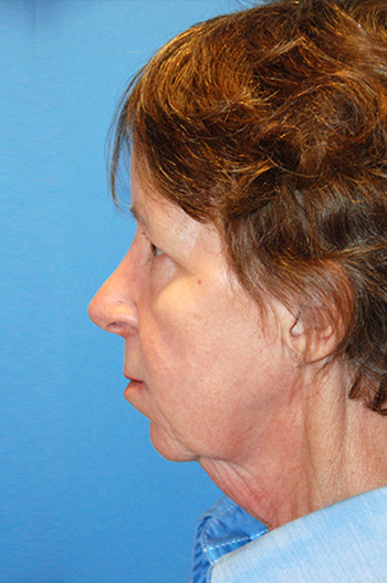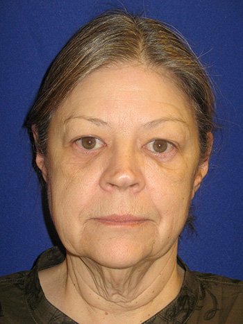 After Upper and Lower Eyelid Lift, Face Lift and Platysmaplasty Neck Lift with Liposuction of the Neck. This patient had skin and muscle taken from the upper eyelid and skin and fat from the lower eyelid in this quad blepharoplasty.
