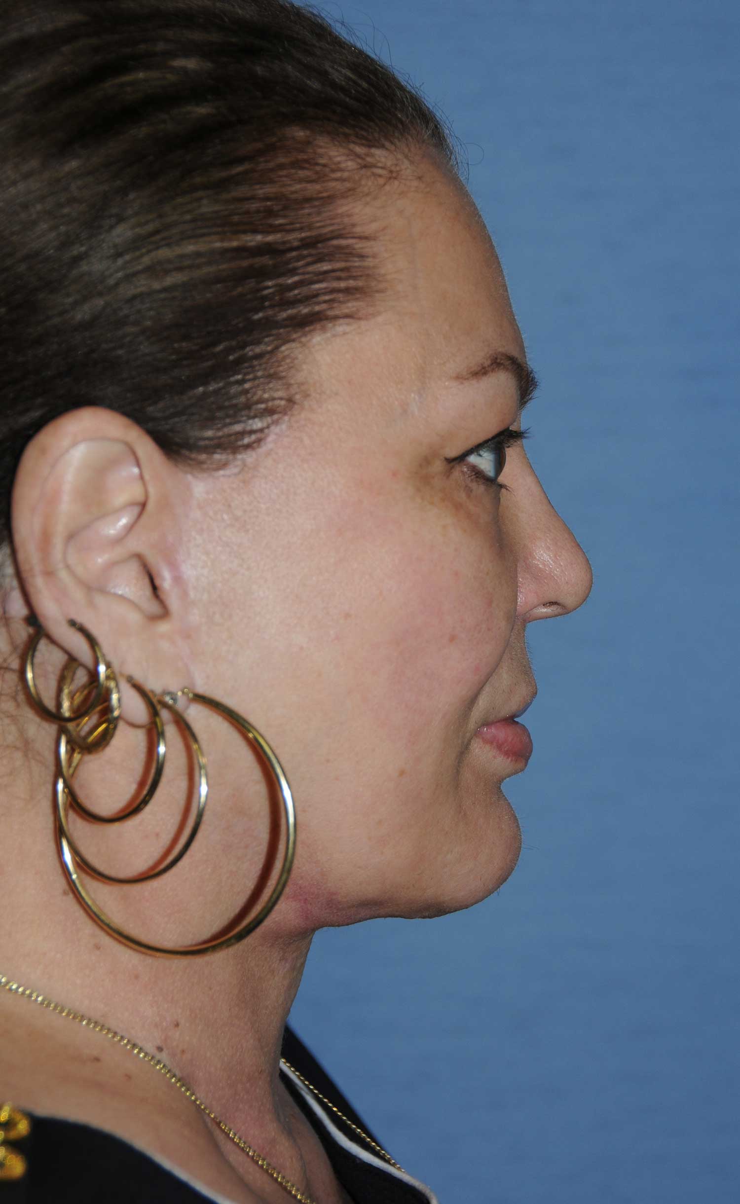 A small incision under the chin helps with the neck/platysma muscle. This incision is essential to do a corset platysmaplasty sewing the platysma muscle from under the chin to the base of the neck and back. The incision is placed in the shadowed area under the chin. It is a great place to incorporate this incision and hide it under the chin’s shadow. When you talk to a person, this location is usually well hidden from someone’s view. Someone would have to raise their chin to the sky to see the incision.