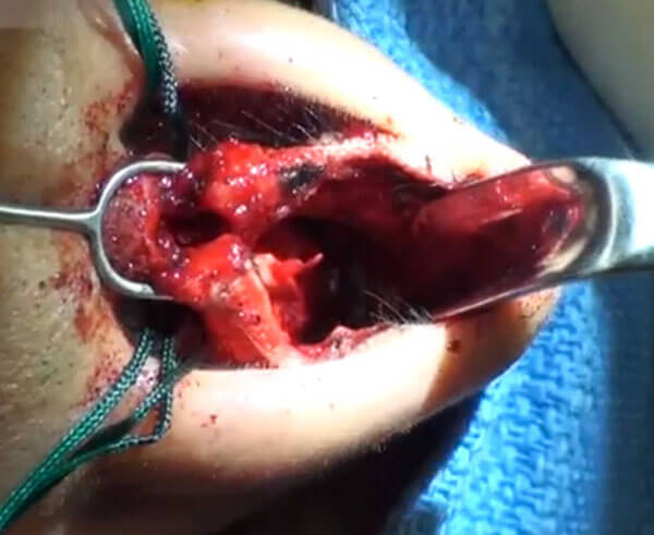 Below is a picture of the open approach after the incision is made and all the structures are exposed and visualization is maximized.